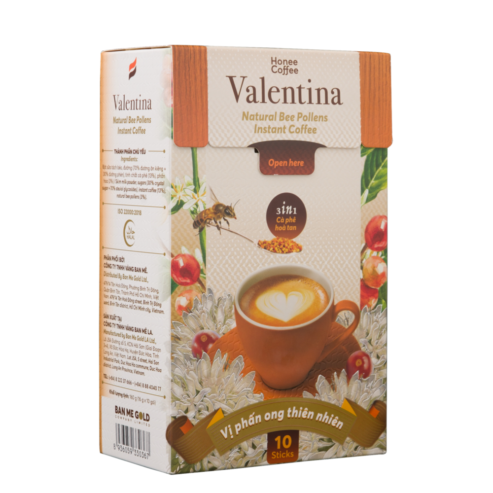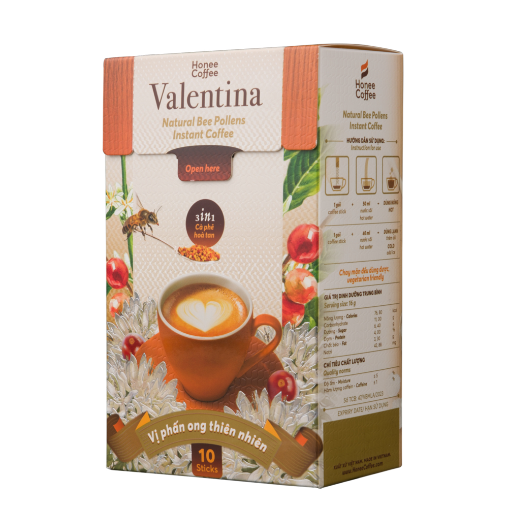 Cafe Hoà Tan Valentina kết hợp Sữa Phấn Hoa Mật Ong