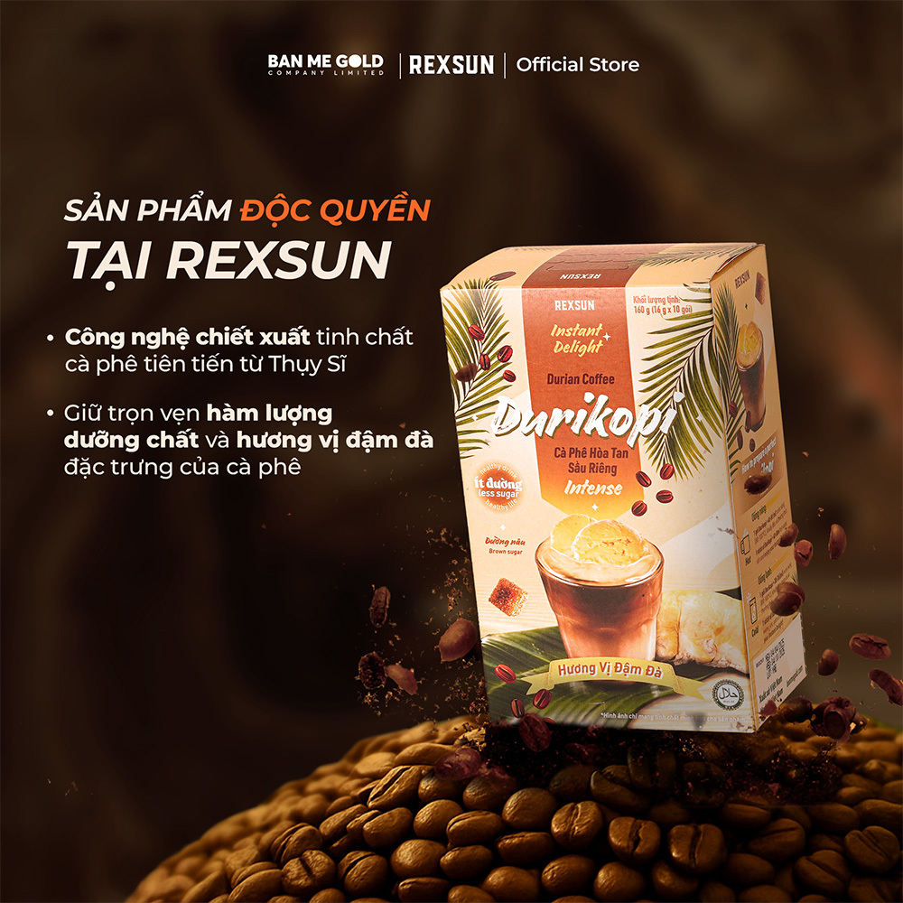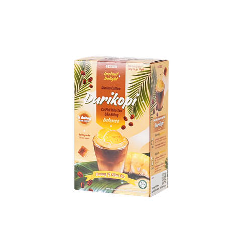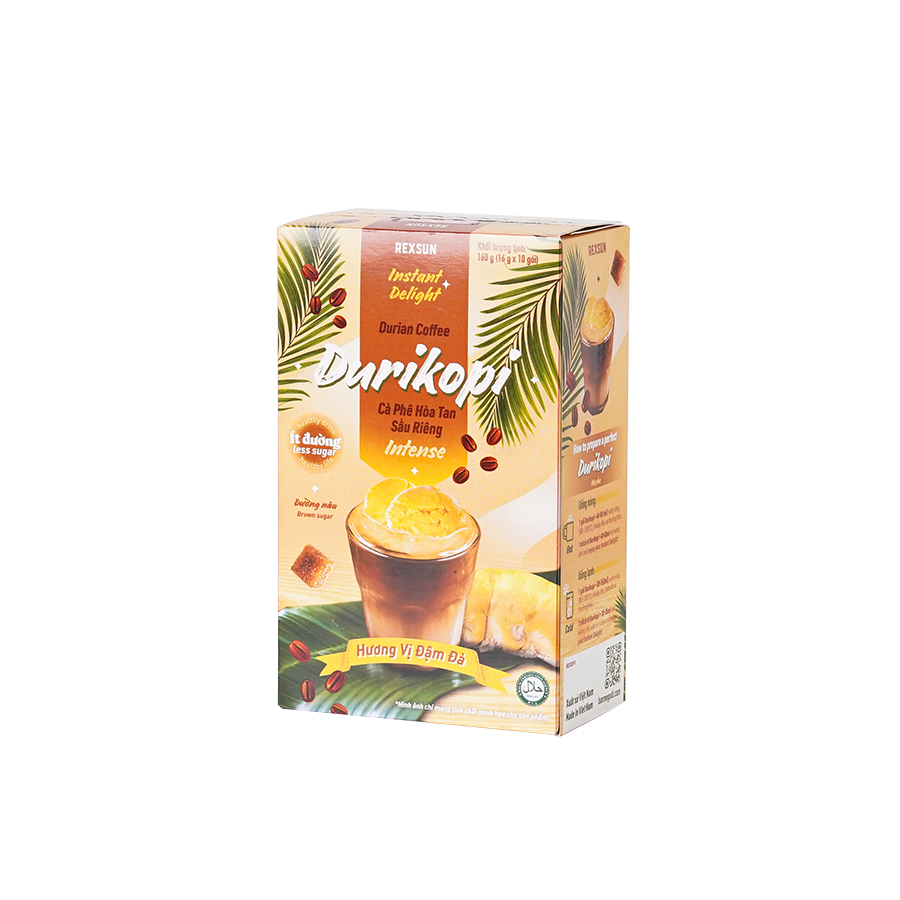 - Thành phần: 10% Tinh Chất Cà Phê Nguyên Chất, Bột Sầu Riêng, Bột Sữa Thực Vật & Đường Nâu Tự Nhiên.